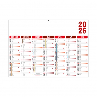 Calendrier bancaire Format : (55 x 34.5 cm) GAMECO ROUGE Minimum de commande : 500 exemplaires 1.52 € (HT) Bandeau 100% personnalisable. Ajoutez vos logos, images et textes.
