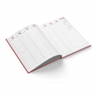 Pages intérieures : 128 pages, papier 80 g/m2, grille internationale (5 langues : Français, Anglais, Allemand, Italien, Espagnol) avec les numéros de semaines et les Saints, Imprimée en deux couleurs gris et rouge. L'agenda semainier débute début Décembre et fini à la mi janvier.