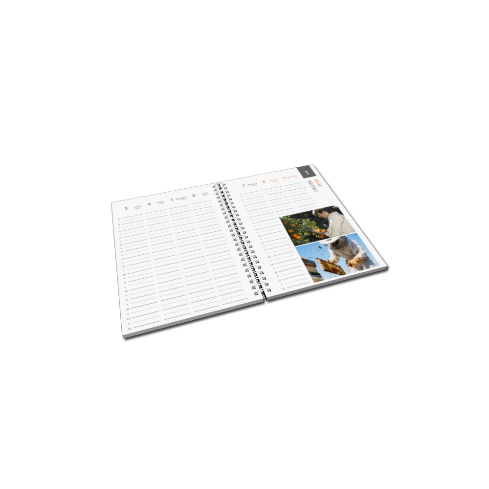 Insertion de photos, logo et textes : autant que souhaité sur la couverture et toutes les pages de l'agenda.