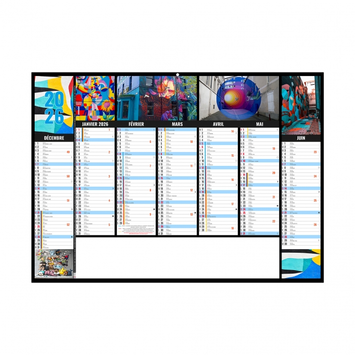 Personnalisation directe en ligne de la zone blanche du calendrier en cliquant sur le bouton bleu ci-dessus "JE CRÉE MES CALENDRIERS".