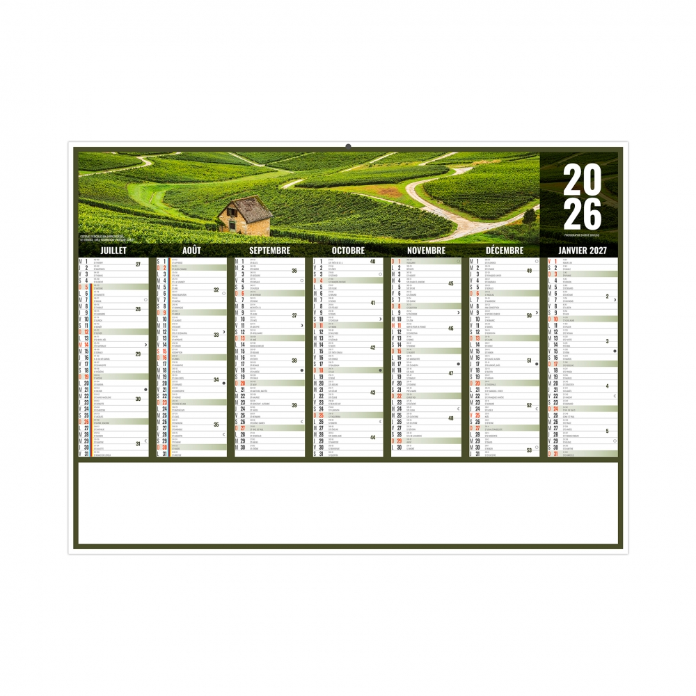 Personnalisation directe en ligne de la zone blanche du calendrier en cliquant sur le bouton bleu ci-dessus "JE CRÉE MES CALENDRIERS".