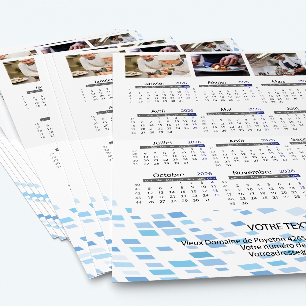 Idéal pour offrir à vos clients ou adhérents en début d'année, ce calendrier est imprimé sur du papier rigide 350 gr/m² brillant de très haute qualité.