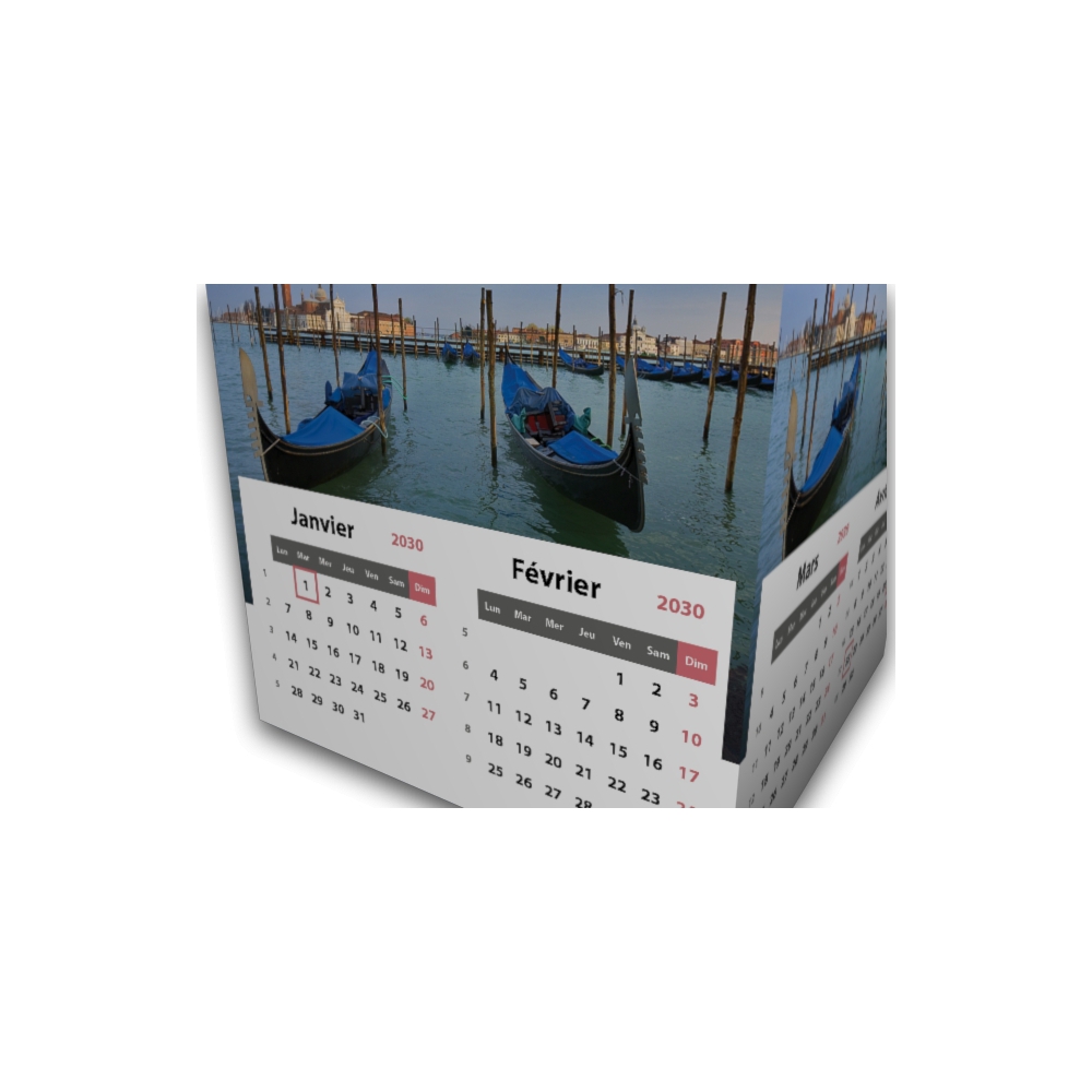 Personnalisez ce Calendrier Cube avec vos photos/logos et textes et surprenez vos clients ou adhérents ! Pratique, ce cube sert aussi de rangement pour vos petites affaires de bureau.