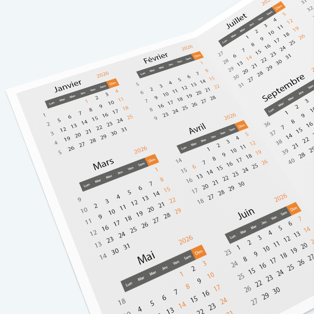 Calendrier de poche DOUBLE - Grille calendaire 100% personnalisable