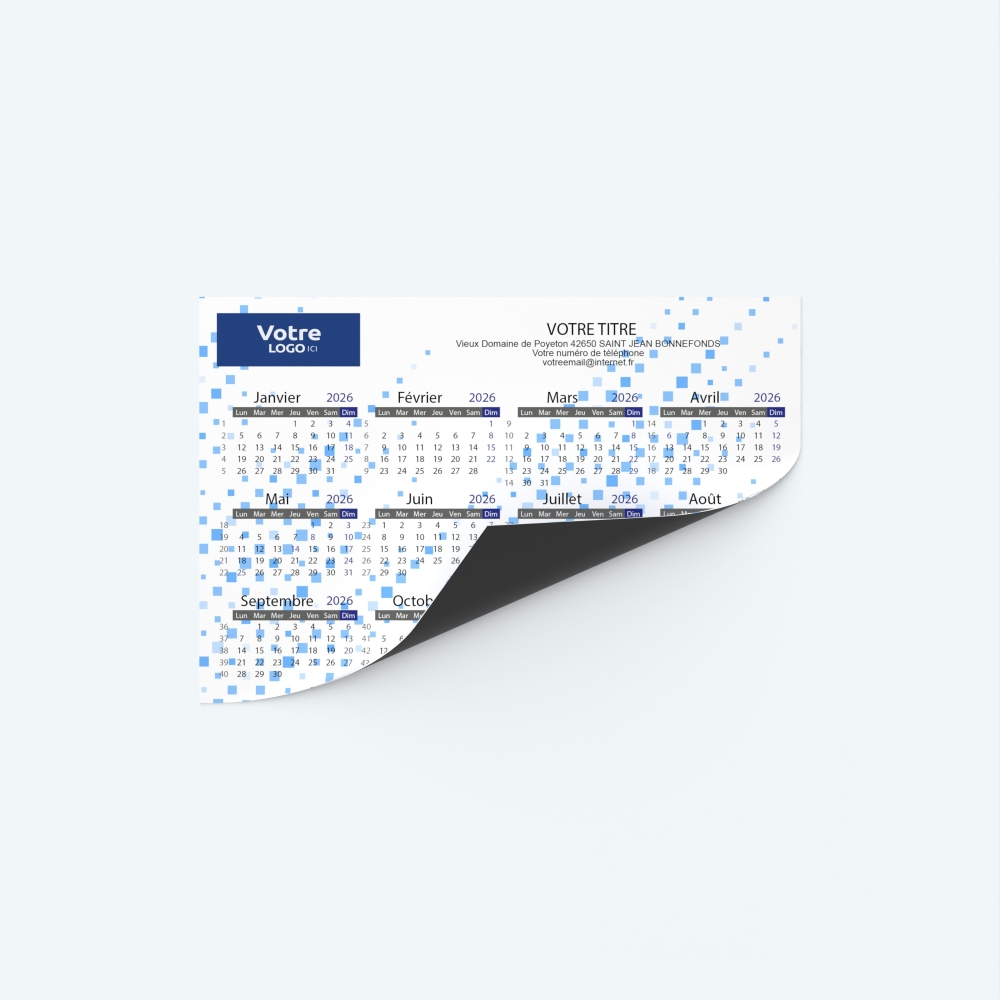 Personnalisez à votre guise ce calendrier magnétique afin de promouvoir de façon originale votre entreprise ou association.