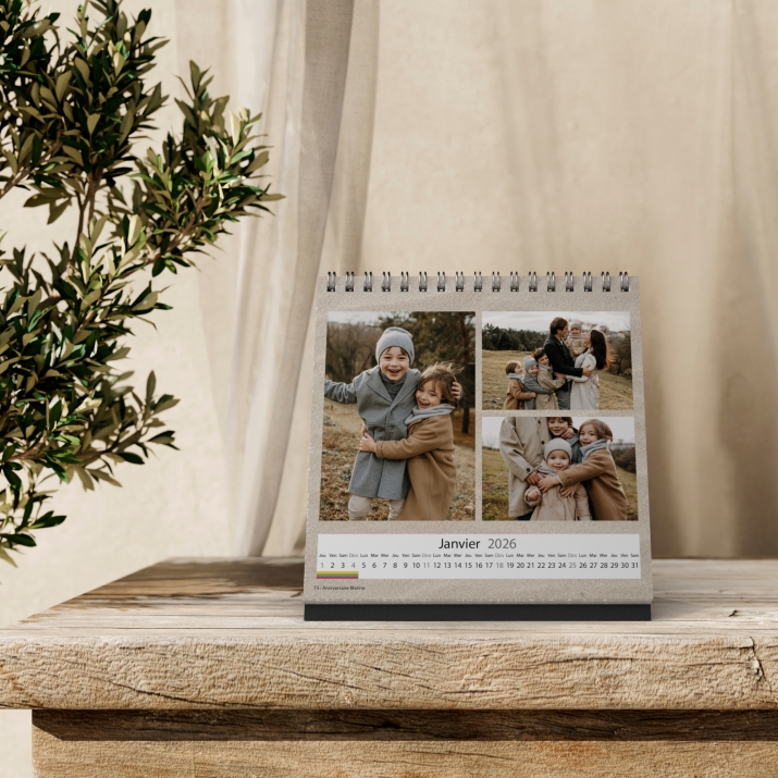 Pratique et compact votre calendrier se pose facilement sur votre bureau ou table de salon. Personnalisez ses 13 pages avec vos photos et textes pour en faire un objet unique, à votre image.