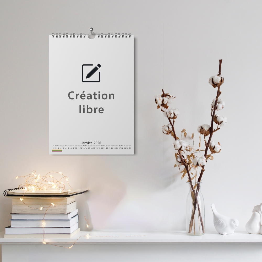 Ce calendrier met vos photos à l’honneur en grand format sur la partie haute. Composé de treize feuillets, il sublime vos images mois après mois et se transforme en véritable objet de décoration murale.