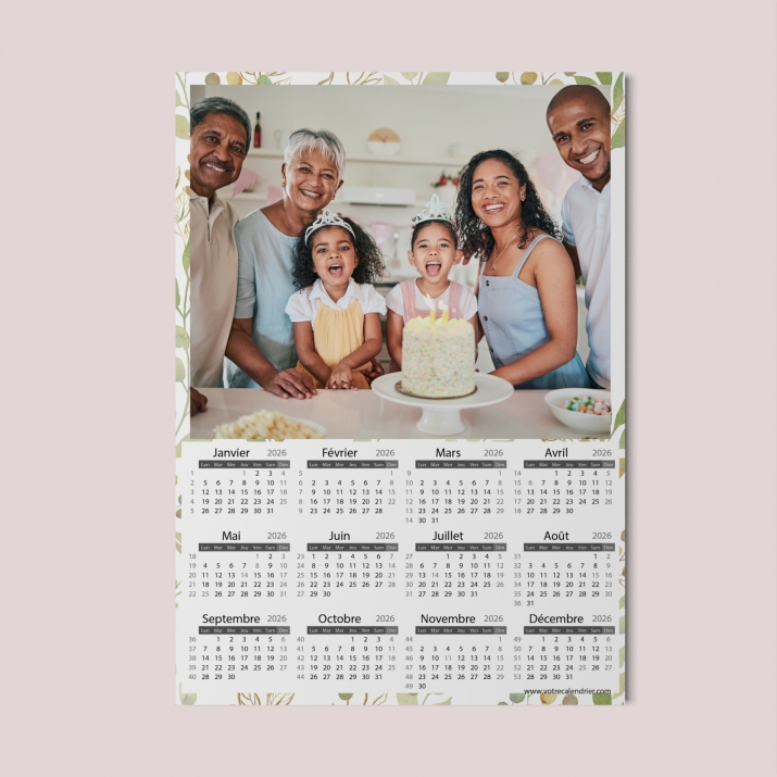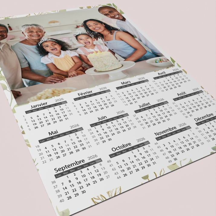 Toute votre année sous les yeux en un seul regard, sans tourner de pages. Fini les oublis : vous gardez le cap avec vos événements clés bien visibles d’un seul coup d’œil. Un format pratique, idéal pour s’organiser facilement tout en mettant en valeur vos plus belles photos.