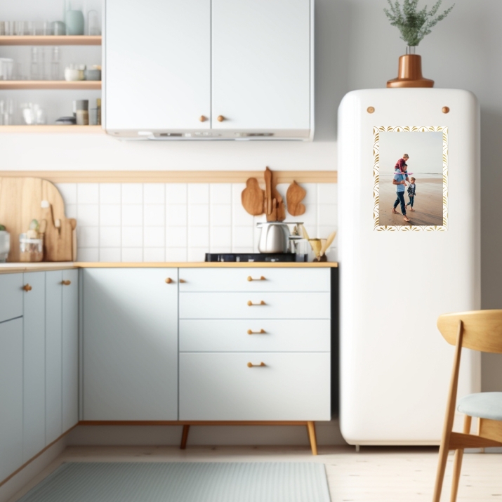 Votre poster magnétique est personnalisable avec un nombre illimité de photos. Il est disponible en plusieurs formats en mode portrait vertical et se colle sur votre frigo ou toute surface métallique.